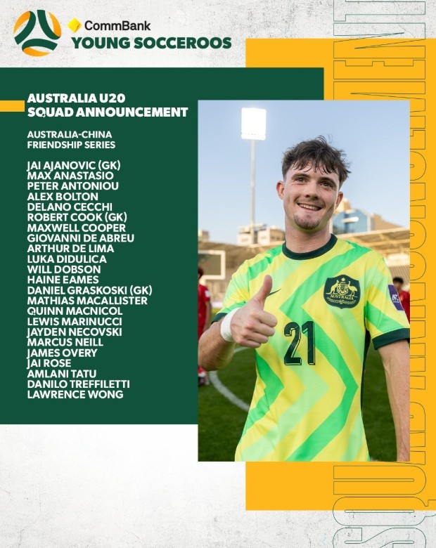 九游体验-热身赛两战中国U20!澳大利亚U20名单:华裔球员黄振文在列