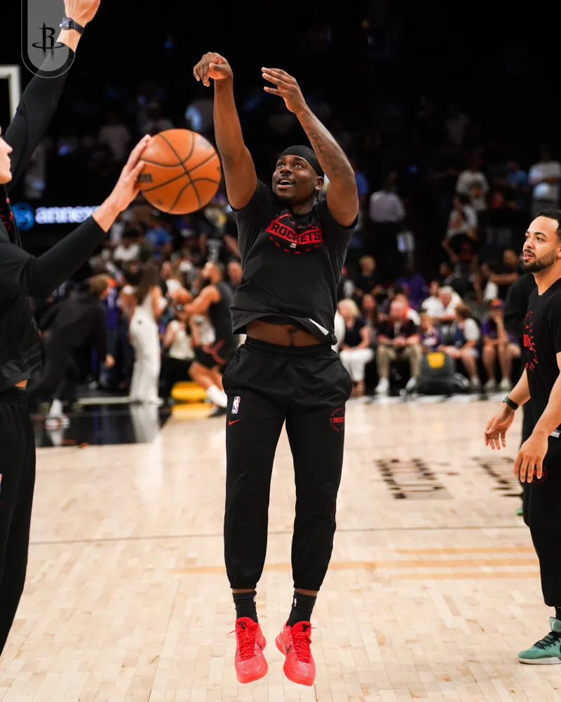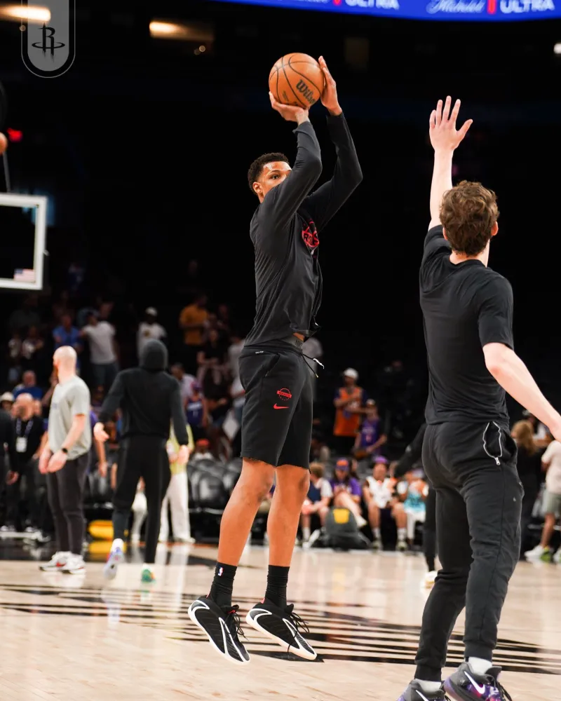 赛前,火箭官方社媒分享球员赛前训练的组图,凯文-杜兰特等球员出镜。