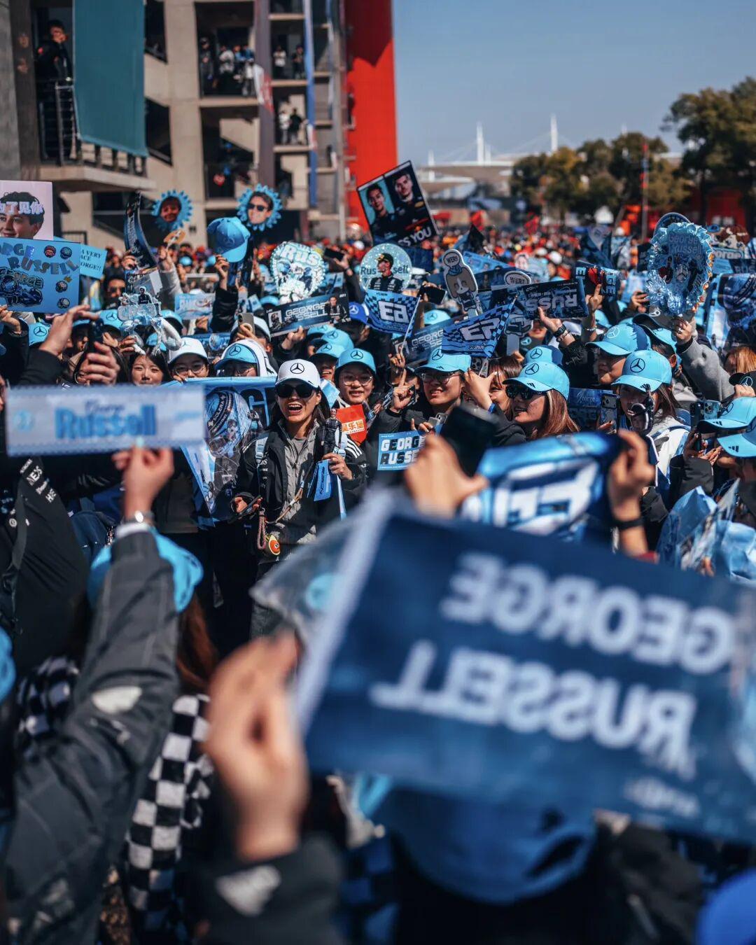 其中,排位赛中拉塞尔赛车出现故障后的逆转、梅赛德斯在直道上的连续超越、法拉利双车的轮对轮对抗、维斯塔潘在新车调校中的挣扎……都在现场不断触发不同车迷阵营之间的「应援」对抗,并随着转播镜头与社交媒体传播被迅速传播。
