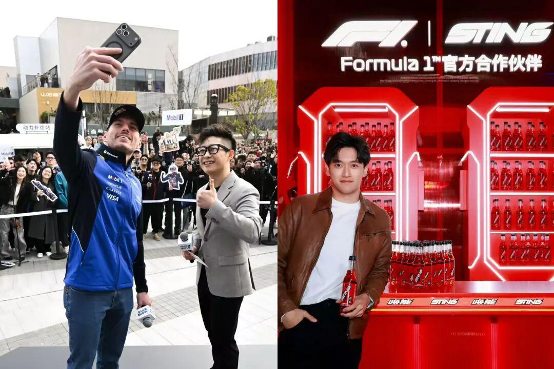 美孚1号把「美孚1号动力嘉年华」直接搬到上海西岸,更邀请维斯塔潘到场与车迷互动,现场还设置了混动科技馆、模拟驾驶等展陈和体验;百事集团旗下品牌Sting唤能,也在比赛前官宣正式进入中国市场,同时携手品牌代言人周冠宇一同亮相。